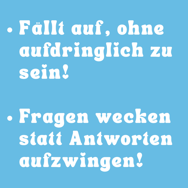Mach andere neugierig und reg zum Nachdenken an!
